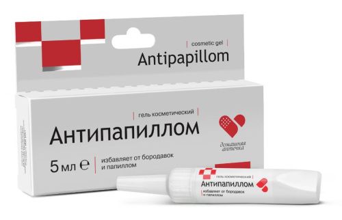 - Антипапиллом «Две линии». Гель для удаления папиллом. Препарат проникает в глубокие слои кожи и способствует разрушению пораженных капилляр (питающих новообразование). Эффективен в комбинации с другими наружными средствами.
