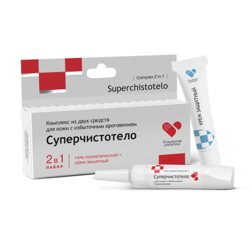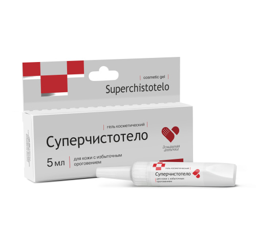 - Супер Чистотел. В основе – гидрокарбонат натрия, гидроокись натрия. Гель разрушает верхний слой папилломы. Препарат также стимулирует деление здоровых клеток, благодаря чему после удаления новообразования не остаётся шрама.
