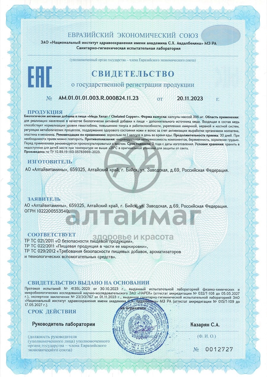 Медь Хелат Алтайвитамины 60 капсул в Гомеле