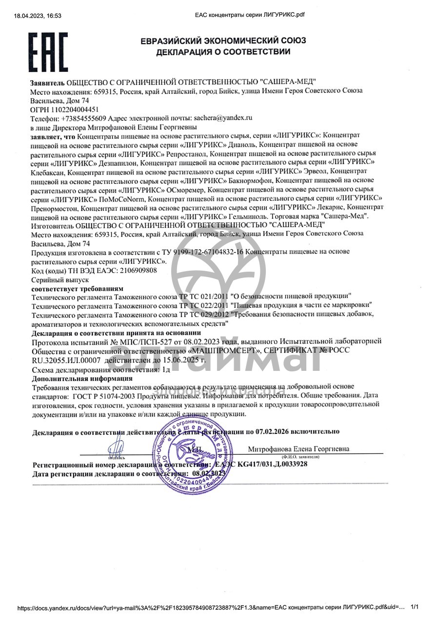 - В карточке товара находится: описание, инструкция по применению, отзывы и сертификаты.