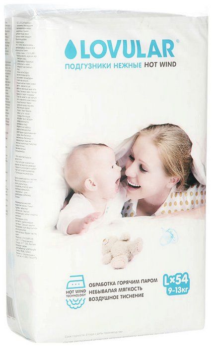 - Технология НОТ WIND - предварительная «утюжка» материалов сверх горячим паром придает детскому подгузнику Lovular воздушность и мягкость, обеспечивает невероятный комфорт, надежность и безопасность при использовании.