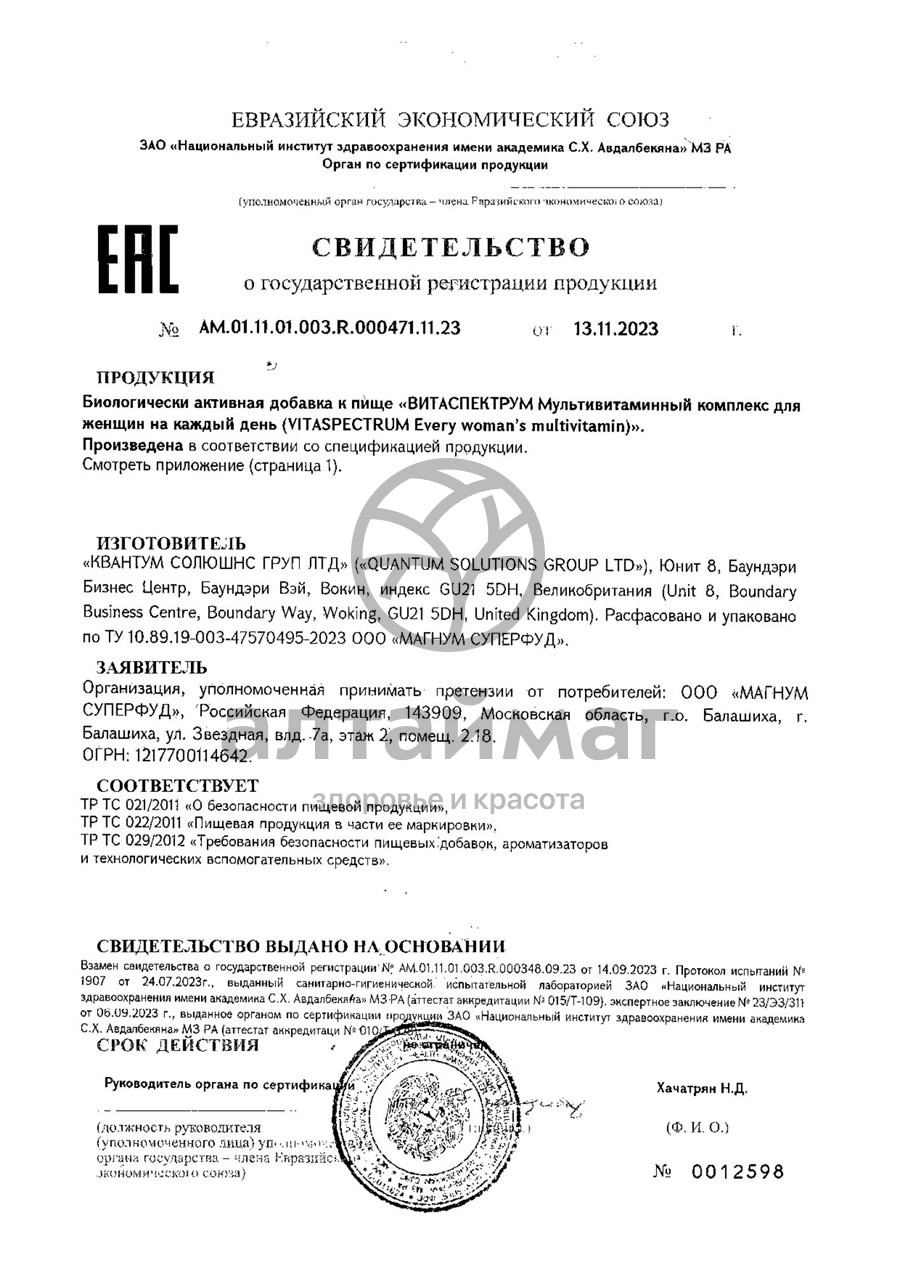 - Купите Витамины для женщин VitaSpectrum 60 таблеток в Гомеле по доступной цене 785 ₽ с доставкой на дом или заберите Ваш заказ в Гомеле из ближайшего пункта выдачи, сделав заказ на AltaiMag.ru.